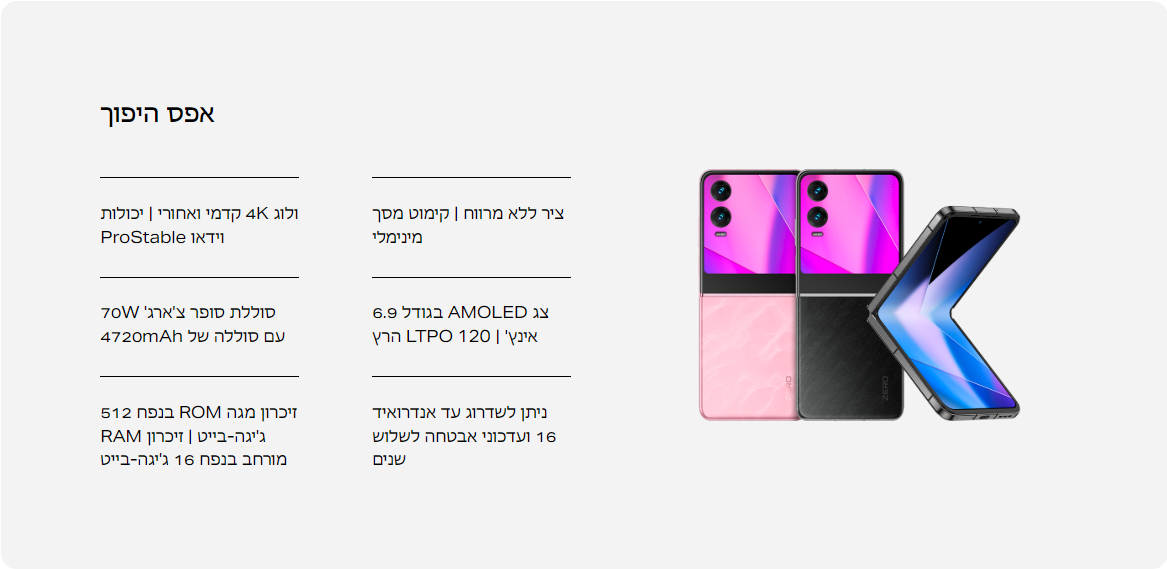 מוצר נוכחי: טלפון סלולרי Infinix Zero Flip 512GB 8GB RAM