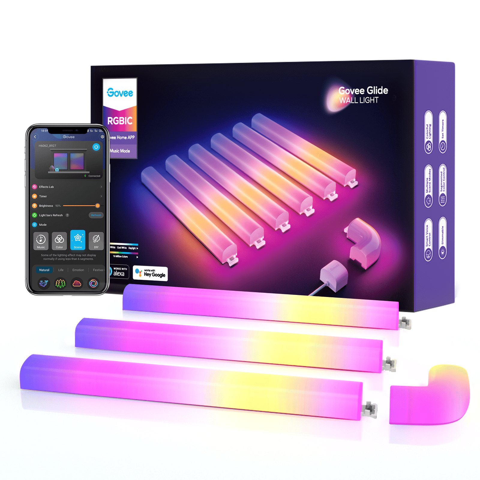 דגם: H6062 (6+1) תאורת קיר חכמה, צבעונית ומותאמת אישית מבית Govee עם מקטעים הניתנים להחלפה ושינוי בכל סדר שתרצו כך שתקבלו קיר שהוא באמת הסגנון שלכם. תוכלו לשלוט בעיצוב באמצעות עוזרת קולית כמו Alexa או Google Assistant, וגם באמצעות אפליקציית Govee Home. תוכלו להתאים אישית את העיצוב, האפקטים, הצבעים ועוד.